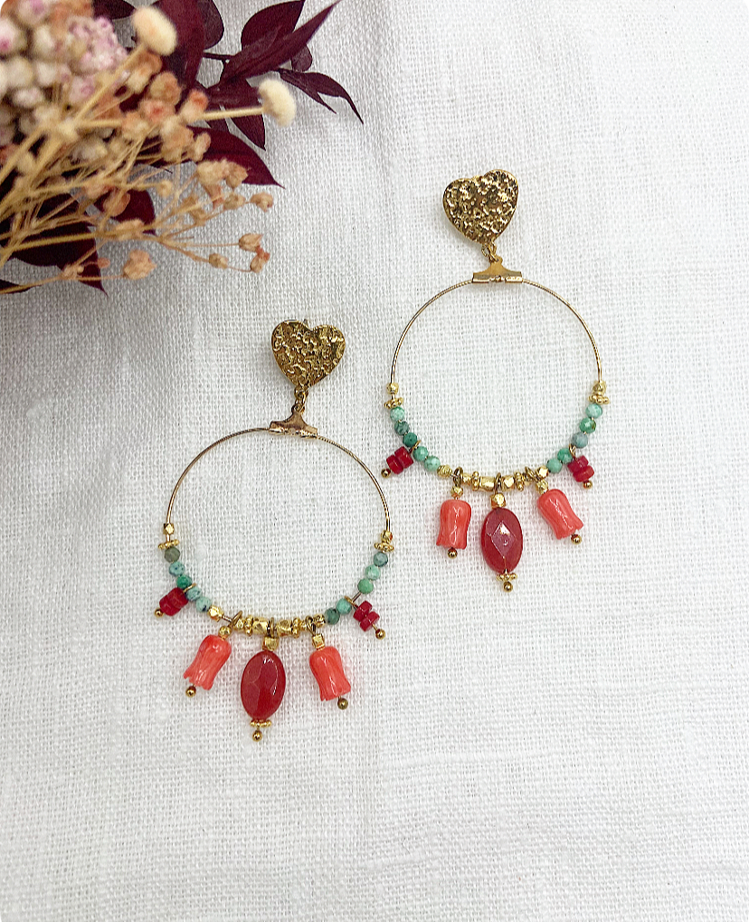 Boucles d’oreilles entièrement réalisées en acier et plaqué or 24K.