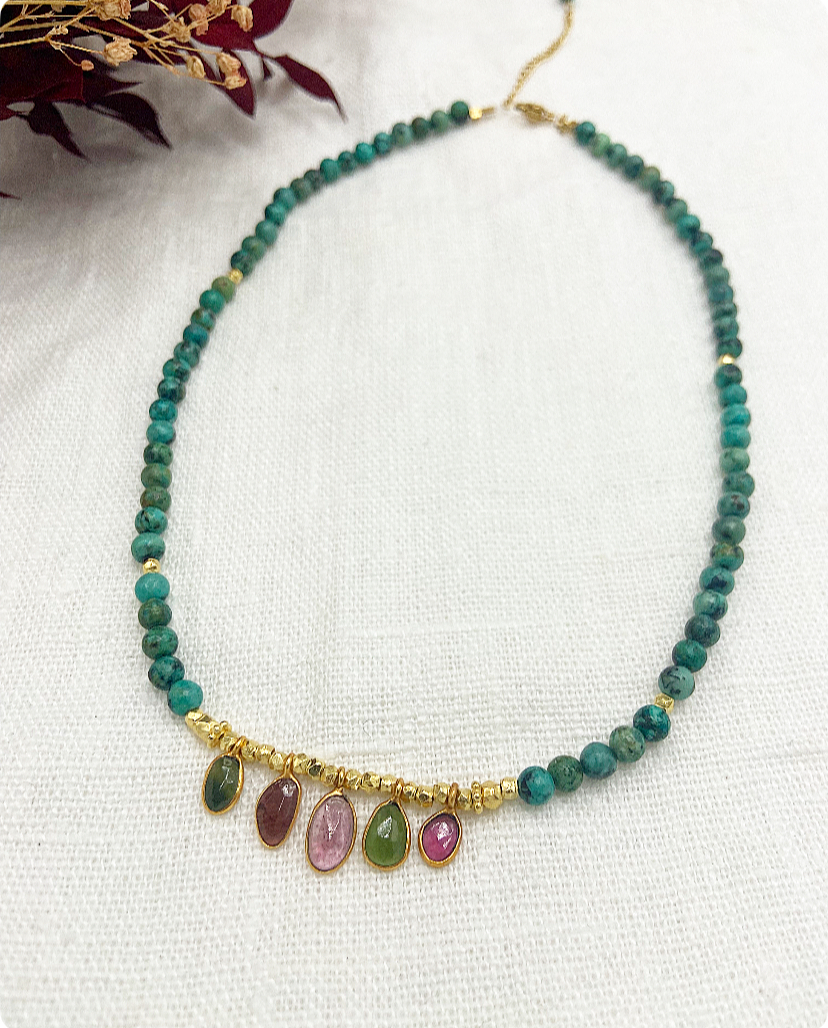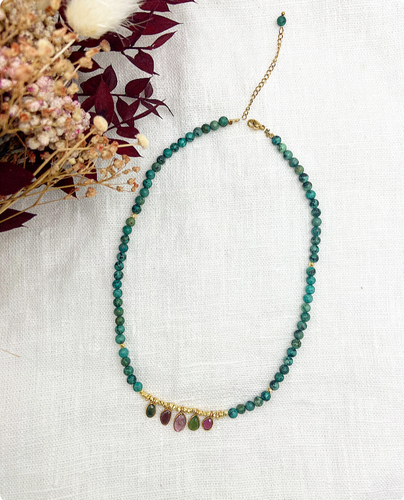Le collier mesure 35 cm et dispose d’une chaînette d’extension.